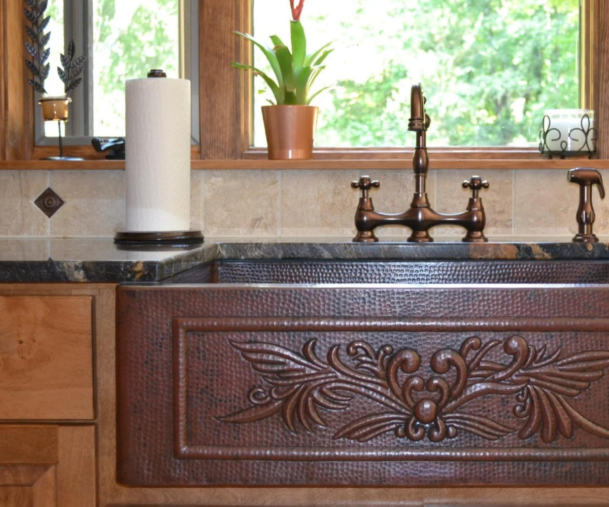 Our skilled artisans can tailor any sink design to match the distinctive decor of your home perfectly, offering decorative copper artwork to complement your custom creation. We are the ultimate source for superior, handcrafted copper fixtures, having assisted countless clients in bringing their unique visions to life, from singular sink vessels to elaborate bathroom and kitchen ensembles. Reach out today to get started on your custom copper creation!